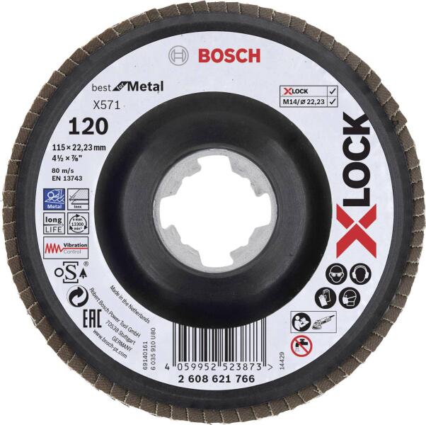 BOSCH X-LOCK Flap discs, angled version, plastic plate X571, 115x22, 23mm, G120, 2608621766 (2608621766)