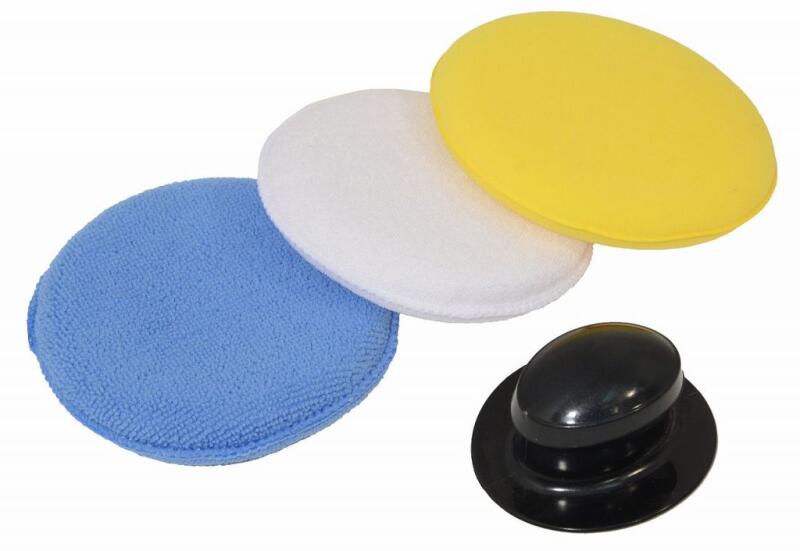 Három darab 12 cm átmérőjű tárcsás készlet a karosszéria tökéletes kézi polírozásához. Az ergonomikus fogantyú úgy készült, hogy bármilyen lemezen használható legyen. Termék részletek: