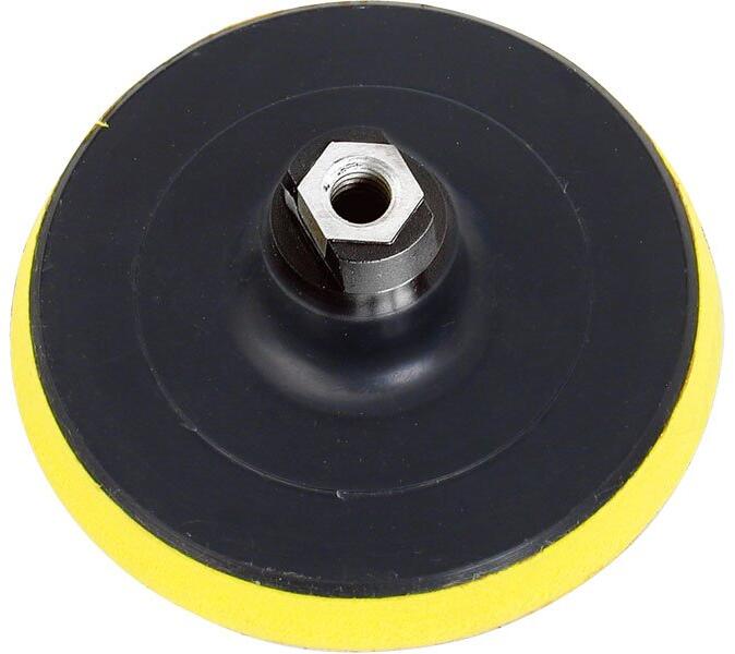 Tépőzáras vastag csiszolótányér sarokcsiszolóhoz. Tárcsa átmérő: 125mm. A tépőzáras csiszolókorongok felfogatására könnyen és egyszerűen használható az M14 menetes gumitányér. Az eltérő rugalmasságú típusai révén az íves vagy egyenes felületek csiszolása egyszerű. Fordulatszám max. : 12.500 ford/perc