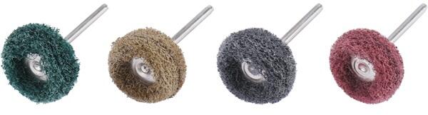 O25 mm × 15 mm-es nylon csiszoló fejek 4 féle finomságban: P80 (barna)×10 db, P150(zöld)×10 db, P240(vörös)×10 db, P300(fekete)×10 db