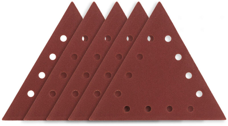 Tépőzáras csiszolópapír, háromszög alakú, lyukakkal, 5 db. A csomag 5 darab háromszög alakú lapot tartalmaz, amelyet a GRAPHITE 59G264 gipszkartoncsiszolóhoz terveztek. A tartozékok praktikus lyukakkal rendelkeznek. A tépőzáras csiszolópapír E anyagból készült. Félig nyitott bevonat és elektrokorundból készült szemcsék jellemzik. Alkalmas lesz professzionális használatra és különböző barkácsolási feladatok során egyaránt.