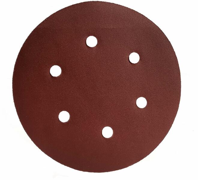 Csiszolókorong 150mm P60 F613 Csiszolókorong 150 mm-es átmérővel és P60-as szemcsemérettel, F613-as lyukasztással 6 furattal a 80 mm-es körön . Bármilyen porelszívóval és tépőzáras rögzítéssel rendelkező elektromos csiszolóhoz használható. Technikai paraméterek:Átmérő 150 mmFuratkör 80 mmFuratszám 8Szemcseméret P60