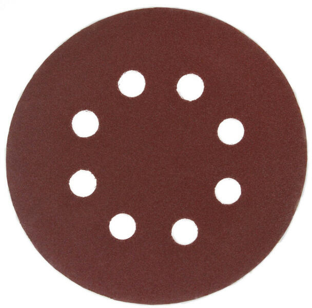 Csiszolókorong 150mm P150 F613Csiszolókorong 150 mm-es átmérővel és P150-es szemcsemérettel, F612-as lyukasztással 8 furattal a 65 mm-es körön . Bármilyen porelszívóval és tépőzáras rögzítéssel rendelkező elektromos csiszolóhoz használható. Technikai paraméterek:Átmérő: 150 mmFuratkör: 65 mmFuratszám: 8Szemcseméret: P150
