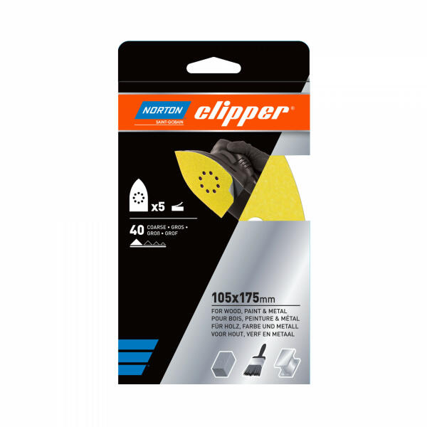 Norton Clipper Q131F delta tépőzáras csiszolólap 105x175mm P40, 5 db/csomag (CT219940)