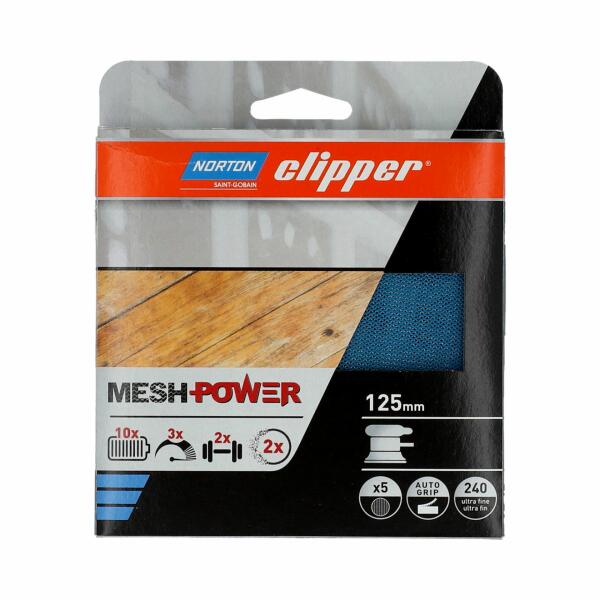 Norton Clipper MeshPower Ceramic tépőzáras csiszolóháló Ø125 mm P240, 5 db/csomag (CT205836)