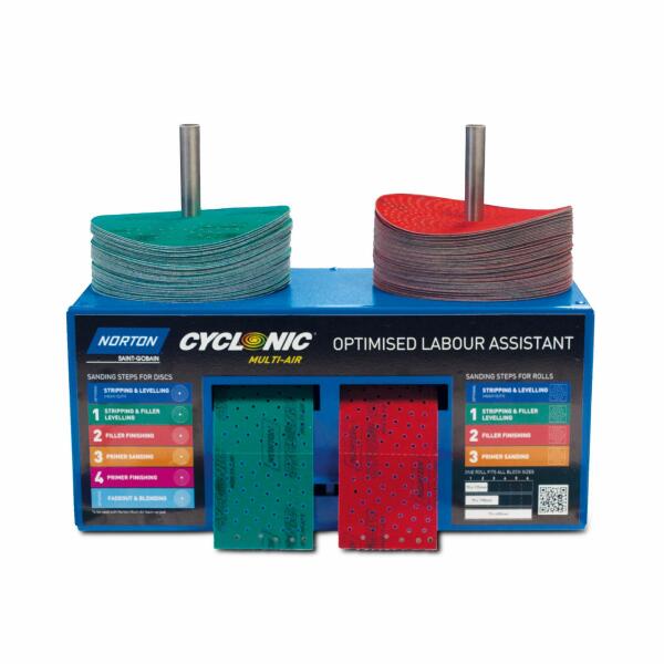 A Cyclonic Multi-Air A975 sorozatának ergonómikus adagolóját a csiszolókorongok és elővágott tekercsek kényelmes tárolására és felhasználására tervezték. Egyesíti a csiszolókorongokat, amelyeket az adagoló rugós rúdtartójának köszönhetően könnyen cserélheti, elegendő, ha a csiszológépet egyszerűen csak fentről rá nyomja a csiszolókoronra, és azonnal készen áll a munkára. A csiszolószalagok egy tekercsben helyezkednek el, amelyek bármilyen hosszúságú csiszológyaluhoz alkalmasak. Egy adagoló kétféle tárcsához alkalmas és 2 féle tekercs tárolható az adagoló belsejében. Az adagolók képesek kapcsolódni egymáshoz.   Termék információk: Gyártói cikkszám: 66261151832video type="youtube" width="480" height="270" autoplay="0"https://www. youtube. com/watch?v=qVIXcvSpJbU&t/video