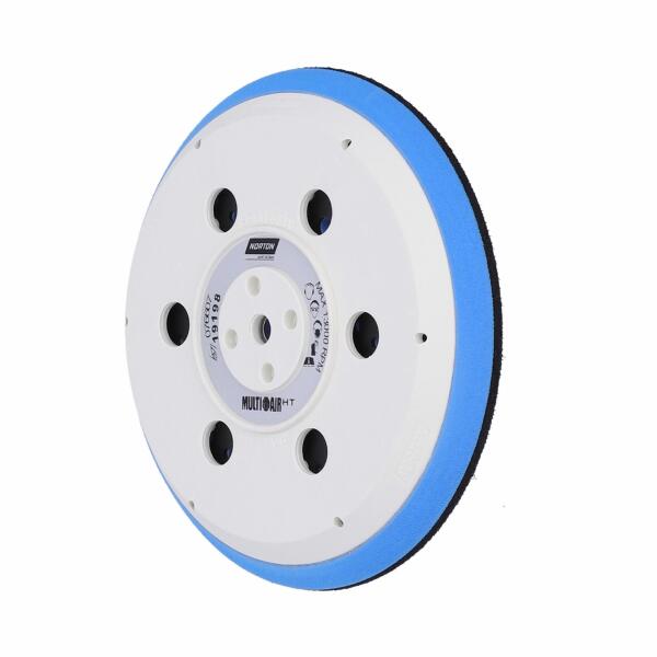 Az innovatív Norton Multi-Air® Process® csiszolókorong felfogó -kialakítás egy gyűjtőkamrába szívja a port, ami optimális légáramlást és erőteljes porelszívást tesz lehetővé. Nagy teljesítmény, nagy termelékenység, tiszta felület és munkakörnyezet ennek az innovatív tervezésnek az eredménye. Az innovatív kialakítás nagy teljesítményt és simább, hibátlan munkafelületet biztosít. Egyedi dobozokba csomagolva Festool és Rupes adapterekkel, M8 és 5/16" csavarokkal, egy fém és három szálgyűrűs távtartóval, hogy illeszkedjenek a piacon legelterjedtebb csiszológépekhez. A 150 mm-es Multi-Air hátlap 3 sűrűségben kapható (125 mm közepes és puha).