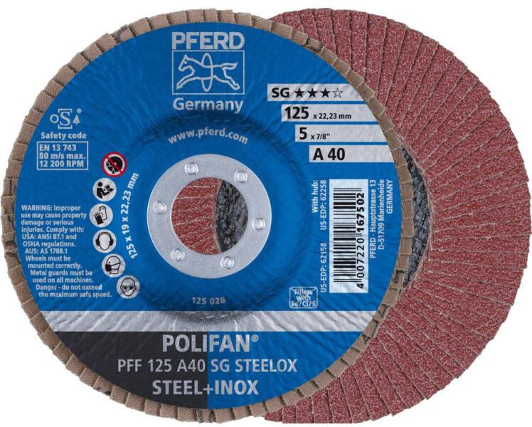 Pferd Polifan PFF 125 A 40 SG STEELOX lamellás csiszoló korong, 125mm, 10 db (67604125)