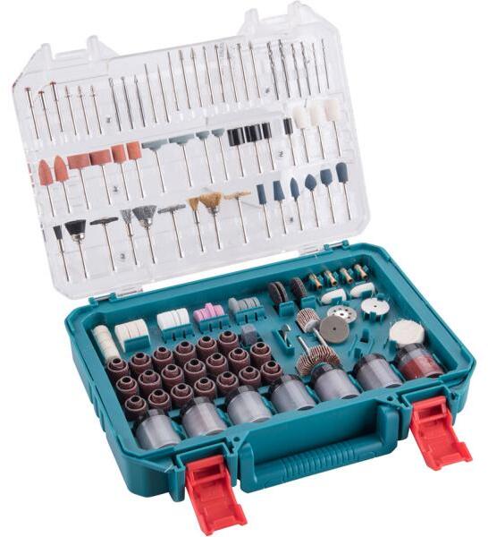 Egyenes köszörülési tartozékok, 420 db. Nagy egyenes köszörülési tartozékok. Tartalma: 40 db csiszológyűrű, 7 db szoknya, 2 db golyósfilc, 1 db textilkorong, 4 db gumi polírozó korong, 6 db csigafúró, 3 db maró, 1 db gyémánt fűrészlap, 1 db rozsdamentes acél fűrészlap, 3 db fix rúd a köszörűkoronghoz, 10 db King Kong köszörűtű, 10 db gyémánt köszörűfej, 9 db köszörűfej, 9 db kefe, 4 db tokmány, 6 db vágókorong, 1 db gumi köszörűkorong, 18 db rúd nélküli köszörűkorong, 1 db köszörűkő, 2 db rúddal ellátott járókerékkészlet, 1 db villáskulcs, 120 db köszörűkorong, 157 db csiszolópapír, 1 db paszta, 3 db nem szabványos menetes bit. Műanyag dobozban csomagolva. TOTAL márka.
