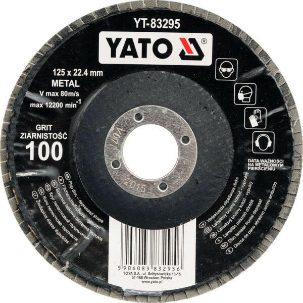 YATO Lamellás csiszolókorong, P100, 125x22, 2mm (YT-83295)