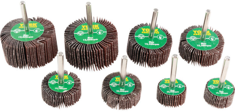 A lamellás-csapos csiszolók használhatók levegős vagy elektromos szerszámgépekben. A legjobb minőségű ipari vászonból gyártva. Alkalmazások széles körére használhatók, pl. rozsda eltávolítása, hegesztések eldolgozása, és fa csiszolása festést megelőzően. Könnyített fejkialakítás a szűk helyekhez való jobb hozzáférés érdekében. 8 darabos készlet